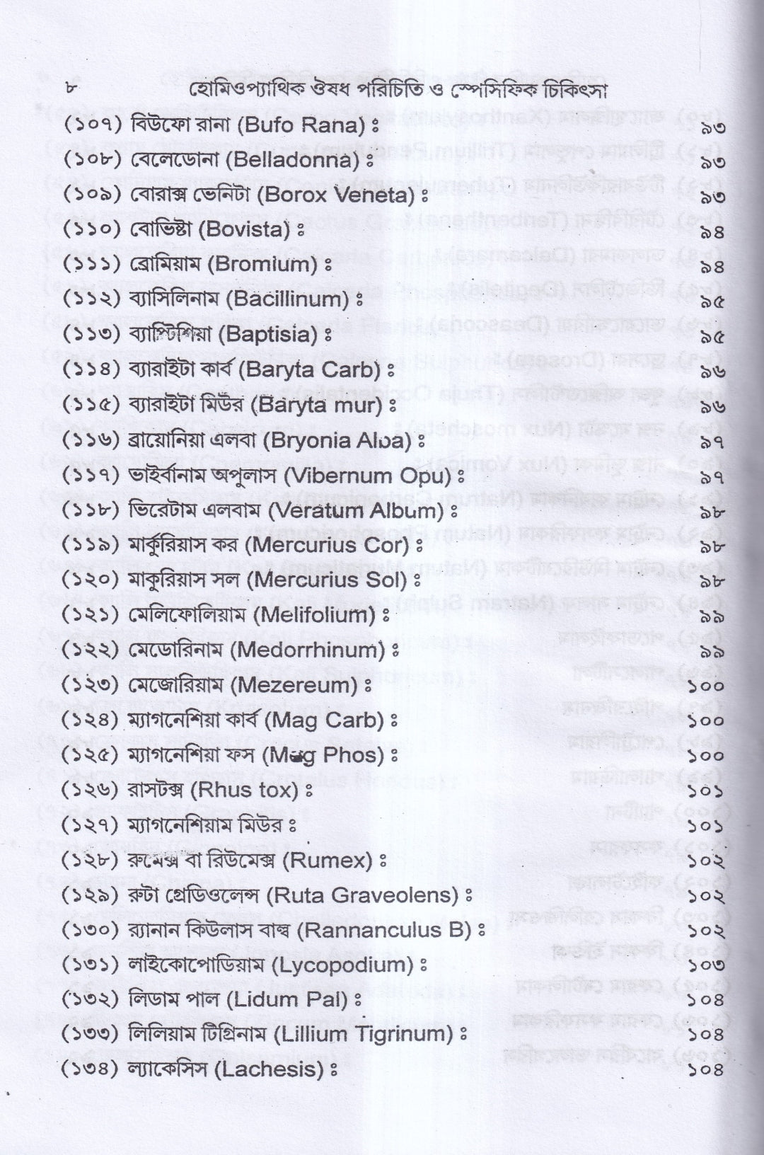 হোমিওপ্যাথিক ঔষধ পরিচিতি ও স্পেসিফিক চিকিৎসা