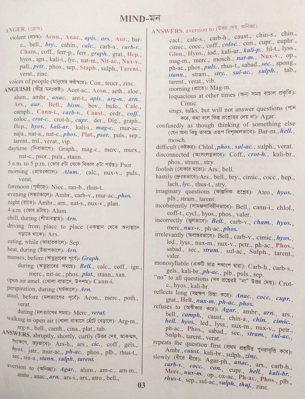 হোমিওপ্যাথিক রেপার্টরী ( বাংলা ও ইংরেজী একত্রে )