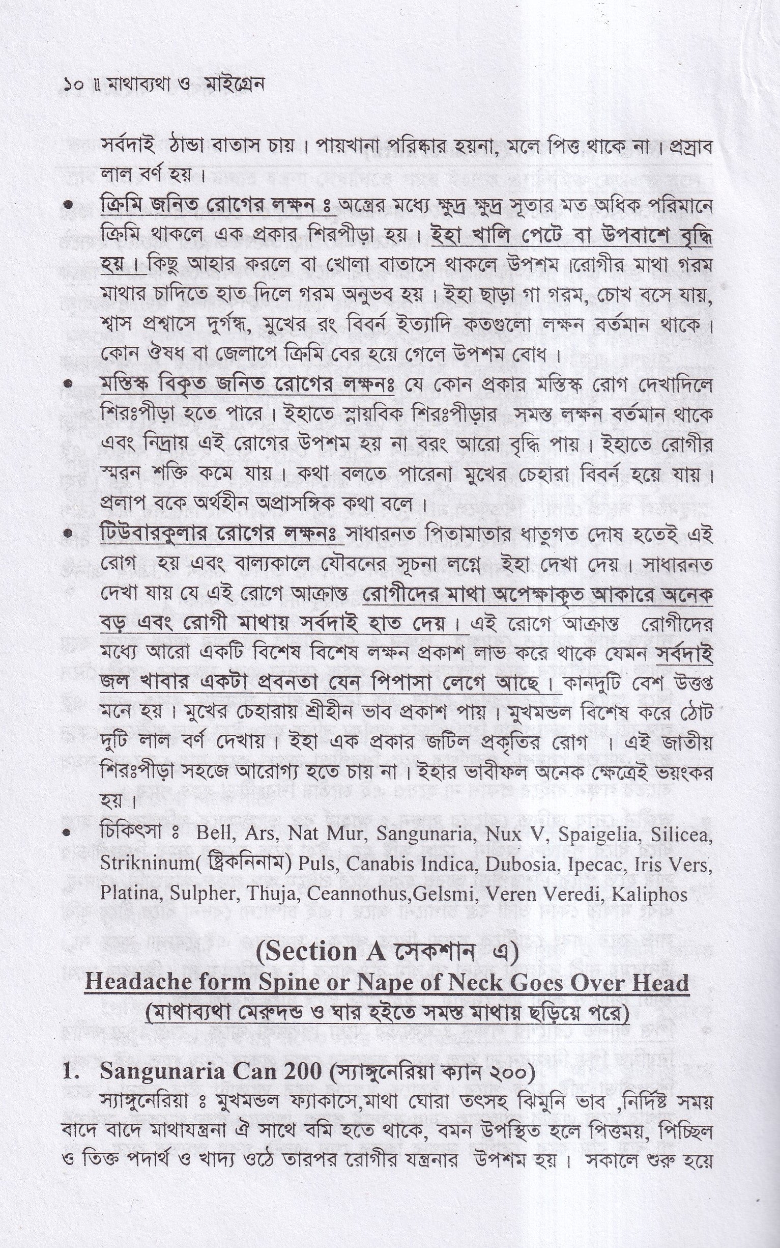 মাথা ব্যথা ও মাইগ্রেন হোমিওপ্যাথিক চিকিৎসা ম্যাটেরিয়া মেডিকা ও রেপার্টরীসহ