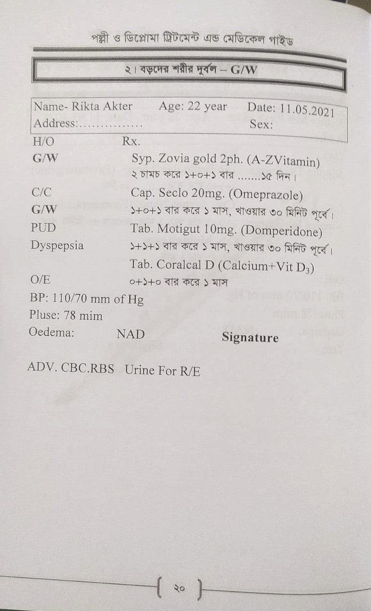 পল্লী ও ডিপ্লোমা ট্রিটমেন্ট এন্ড মেডিকেল গাইড